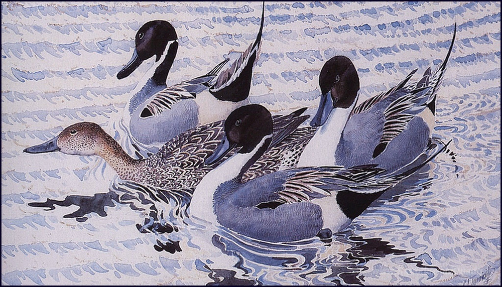 Ti offriamo una riproduzione artigianale su tela dell'opera famosa 'Courting Codoni' di Charles Tunnicliffe, dal Museo delle Riproduzioni.