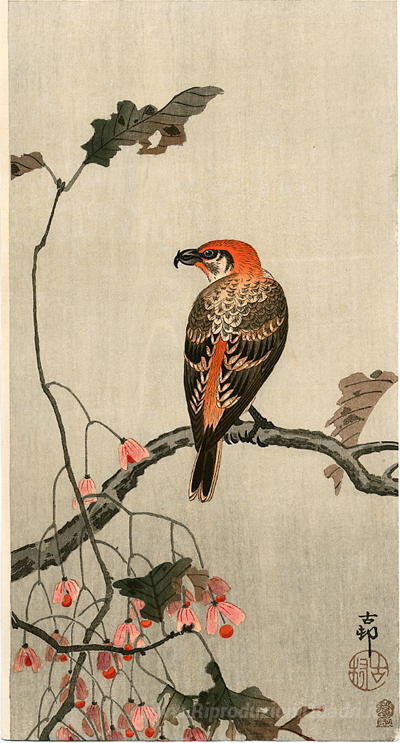 Ti offriamo una riproduzione artigianale su tela dell'opera famosa 'Crossbill' di Ohara Koson, dal Museo delle Riproduzioni.