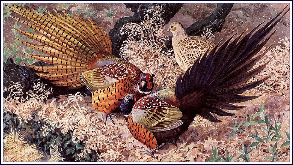 Ti offriamo una riproduzione artigianale su tela dell'opera famosa 'Fagiani Ring-collo' di Charles Tunnicliffe, dal Museo delle Riproduzioni.