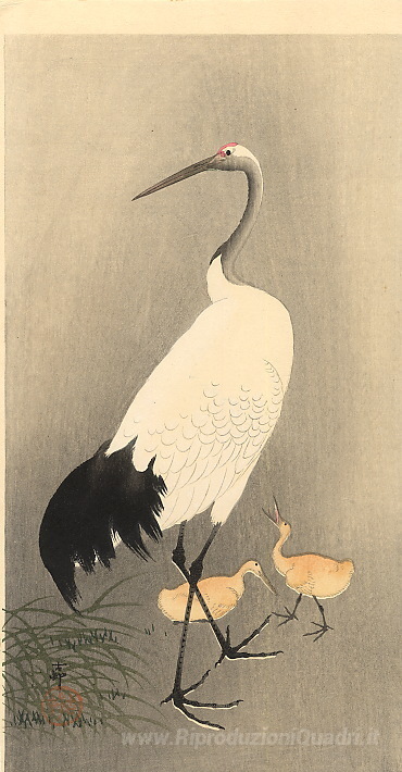Ti offriamo una riproduzione artigianale su tela dell'opera famosa 'Gru coronata rosso' di Ohara Koson, dal Museo delle Riproduzioni.