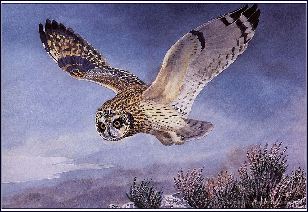 Ti offriamo una riproduzione artigianale su tela dell'opera famosa 'Gufo di palude' di Charles Tunnicliffe, dal Museo delle Riproduzioni.