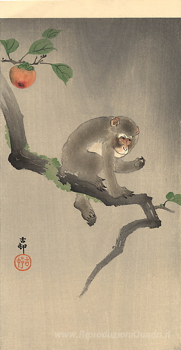 Ti offriamo una riproduzione artigianale su tela dell'opera famosa 'Scimmia sull'albero' di Ohara Koson, dal Museo delle Riproduzioni.