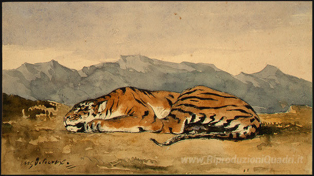 Ti offriamo una riproduzione artigianale su tela dell'opera famosa 'Tigre' di Eugene Delacroix, dal Museo delle Riproduzioni.