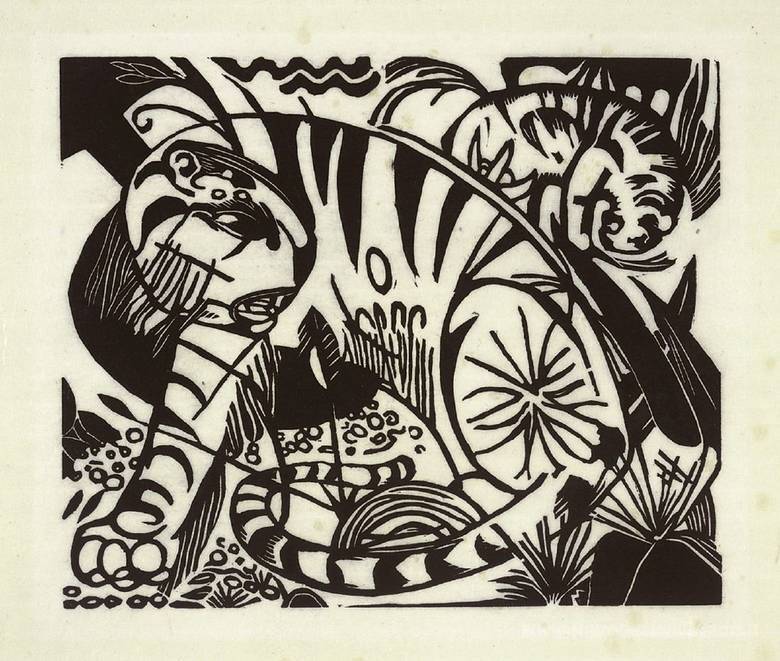 Ti offriamo una riproduzione artigianale su tela dell'opera famosa 'Tigre' di Franz Marc, dal Museo delle Riproduzioni.