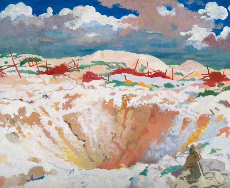 Ti offriamo una riproduzione artigianale su tela dell'opera famosa 'Tedesco Wire, Thiepval 1917' di William Orpen, dal Museo delle Riproduzioni.