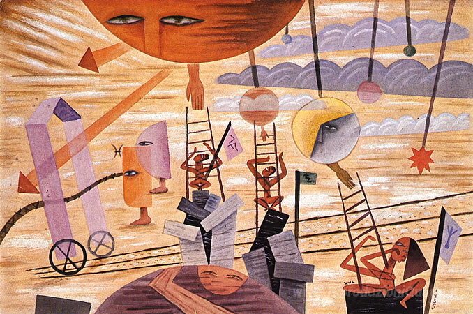 Ti offriamo una riproduzione artigianale su tela dell'opera famosa 'Puerta del Este' di Xul Solar, dal Museo delle Riproduzioni.