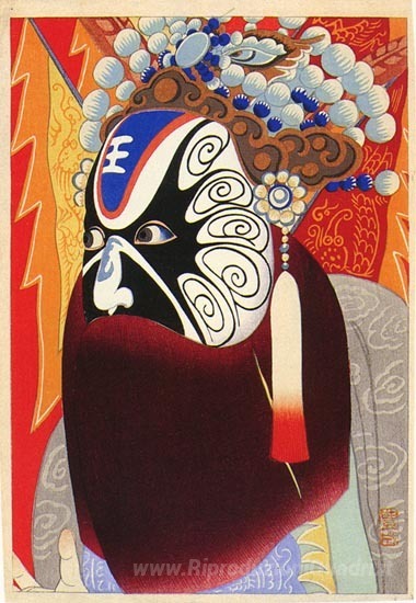 Ti offriamo una riproduzione artigianale su tela dell'opera famosa 'Attore in cinese gioco' di Yamamura Toyonari, dal Museo delle Riproduzioni.
