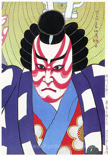Ti offriamo una riproduzione artigianale su tela dell'opera famosa 'Ichikawa Sansho come Umeo in Kurumabiki' di Natori Shunsen, dal Museo delle Riproduzioni.