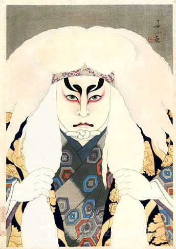 Ti offriamo una riproduzione artigianale su tela dell'opera famosa 'Il ballo del leone' di Natori Shunsen, dal Museo delle Riproduzioni.