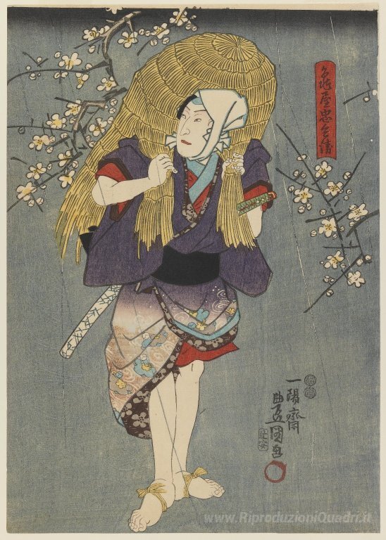 Ti offriamo una riproduzione artigianale su tela dell'opera famosa 'L'attore che interpreta un agricoltore' di Utagawa Kunisada, dal Museo delle Riproduzioni.