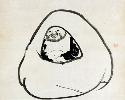 Ti offriamo una riproduzione artigianale su tela dell'opera famosa 'Ridere Hotei' di Kogan Gengei, dal Museo delle Riproduzioni.